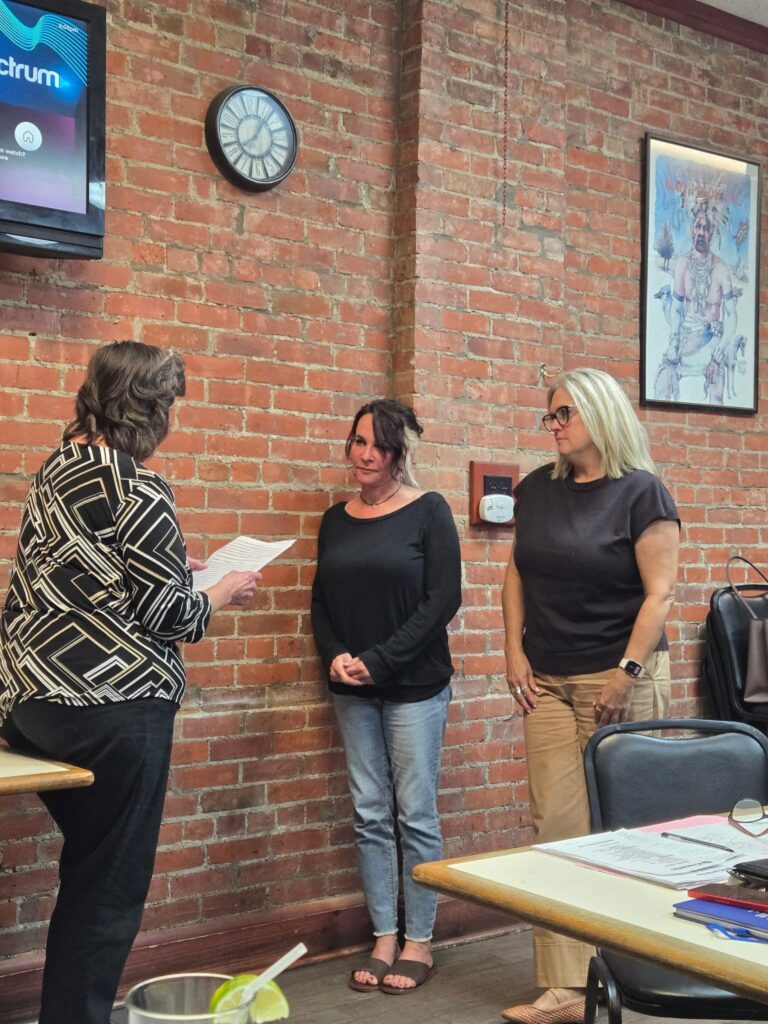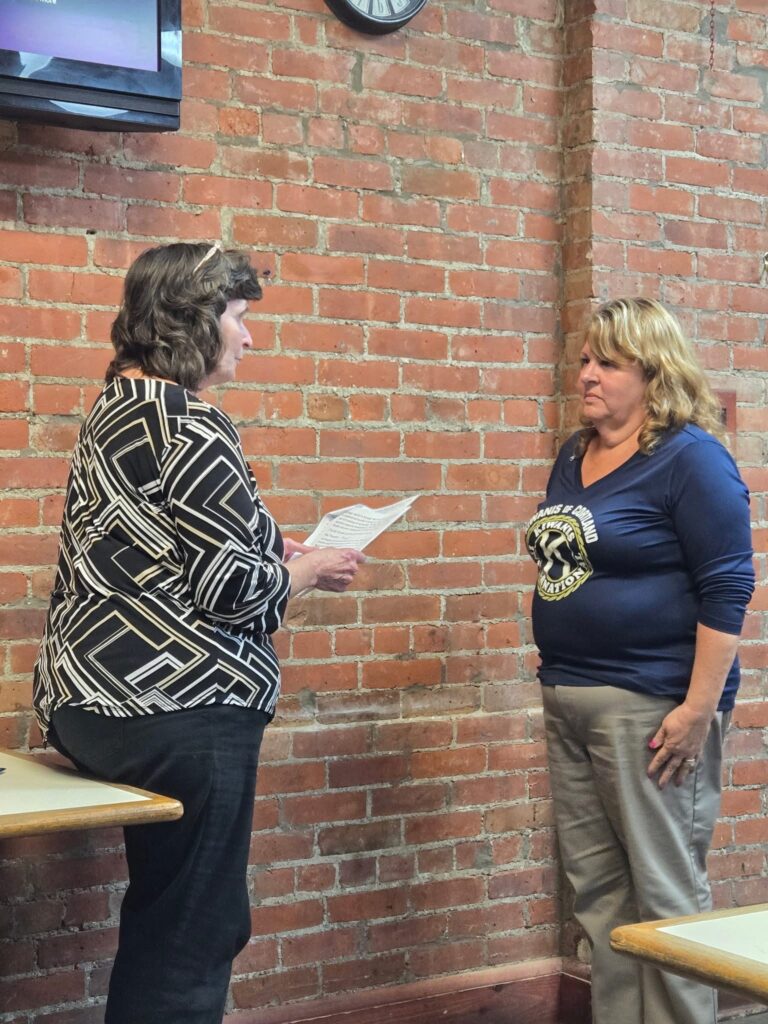Installation of Officers installed by Lt. Governor, Sue Mower. Co-Presidents Charlene Urtz, Sherry Timmons, Vice President Ken McNeil, Treasurer Sheryl Holbrook, Secretary Cindy Stout. Guests from the Elmira Kiwanis Club Steve Mower, Alison Mandel, Gordy & Mary Schuehler.